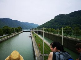 Nachmittags bekamen wir eine Führung durch das Donaukraftwerk Jochenstein über das die Landesgrenze verläuft.