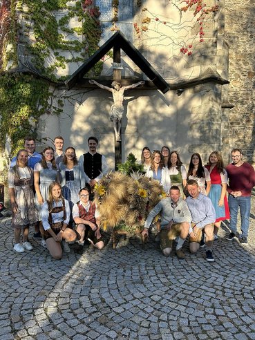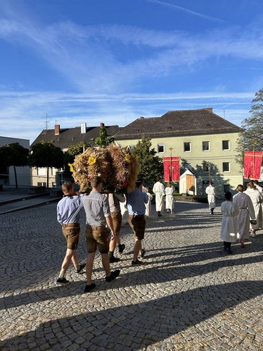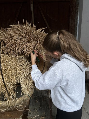 Schon Monate im Voraus wurde das Getreide für die Erntekrone sorgfältig geerntet und eingelagert. Im September war es dann soweit: Die Mitglieder der Landjugend Schwertberg trafen sich, um die Erntekrone neu zu binden. Besonders die vier Stränge, die in den letzten Jahren etwas gelitten hatten, wurden dabei erneuert. Dank der zahlreichen helfenden Hände konnte die Arbeit an nur einem Abend erfolgreich abgeschlossen werden.