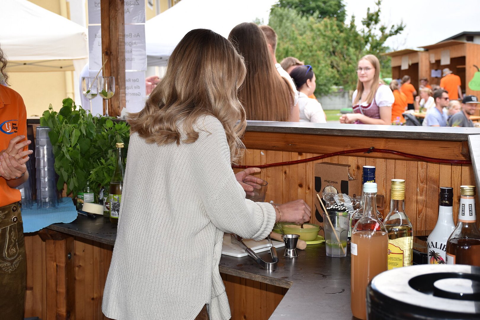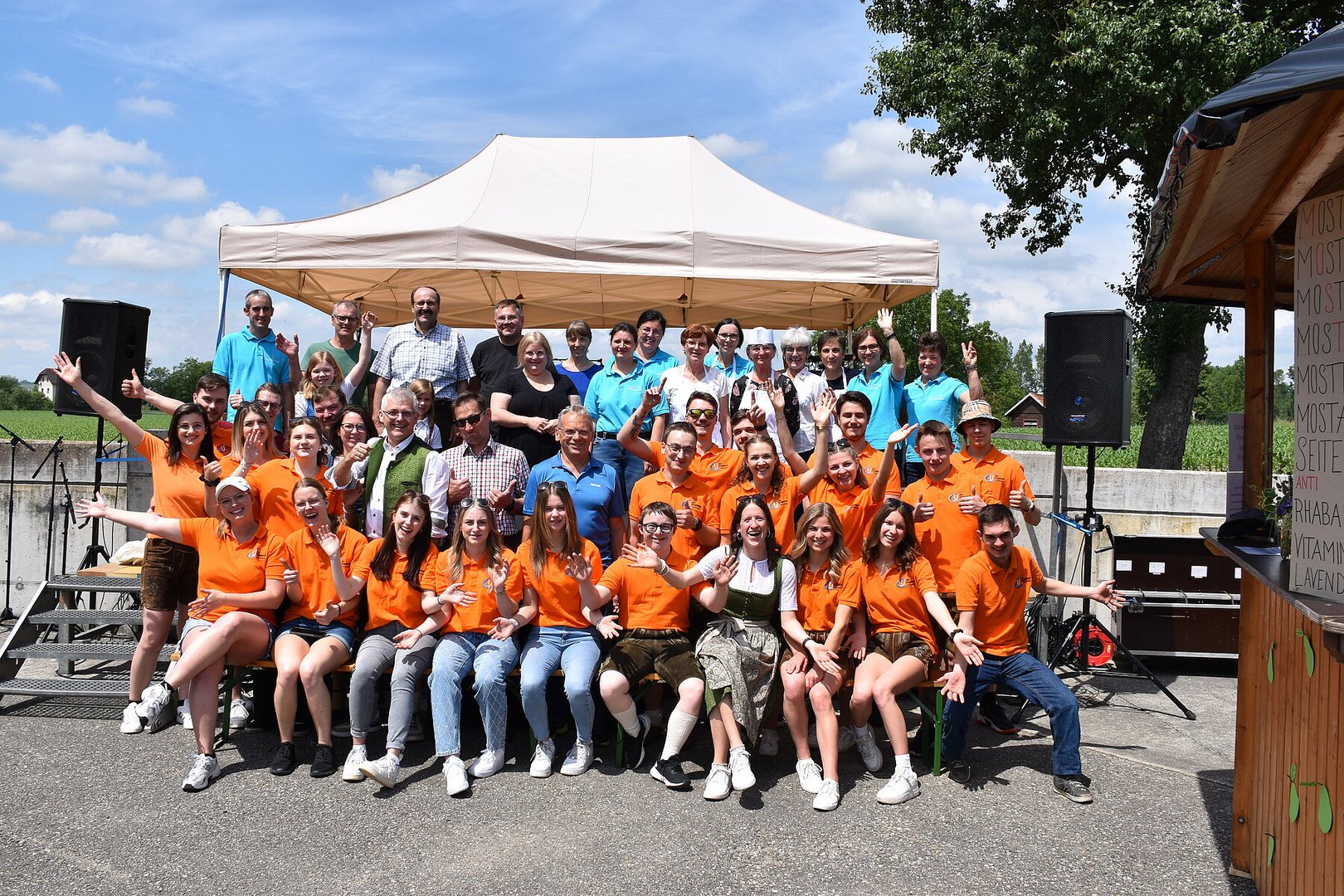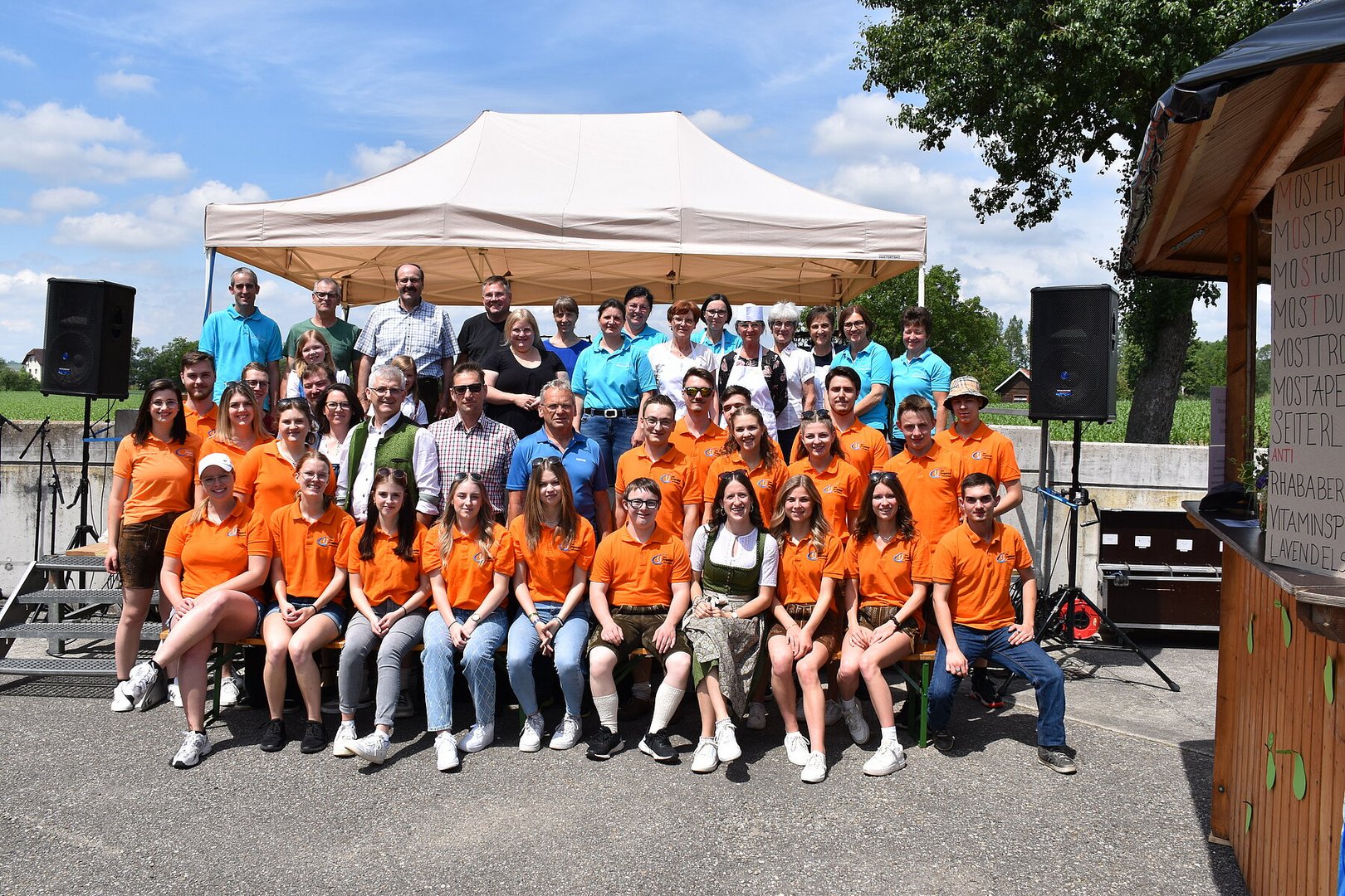 Den ganzen Tag über konnten regionale Moste von Schober, Moser, Pankratzhofer und Peterseil verkostet werden. An der Mostbar wurde auch der selbstgemachte Landjugendmost als Mostcocktail angeboten, darunter Spezialitäten wie Most-Aperol und Mosthuge. Nach Kaffee und Kuchen am Nachmittag gab es abends einen herzhaften Bauernkebap. Für den kleinen Hunger zwischendurch standen verschiedene belegte Brote, wie Topfenbrot, Speckbrot und Bauernchips, bereit.