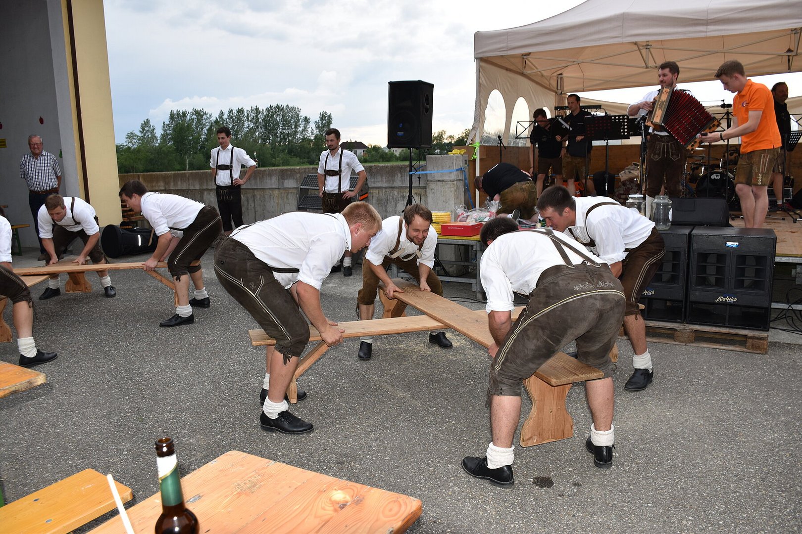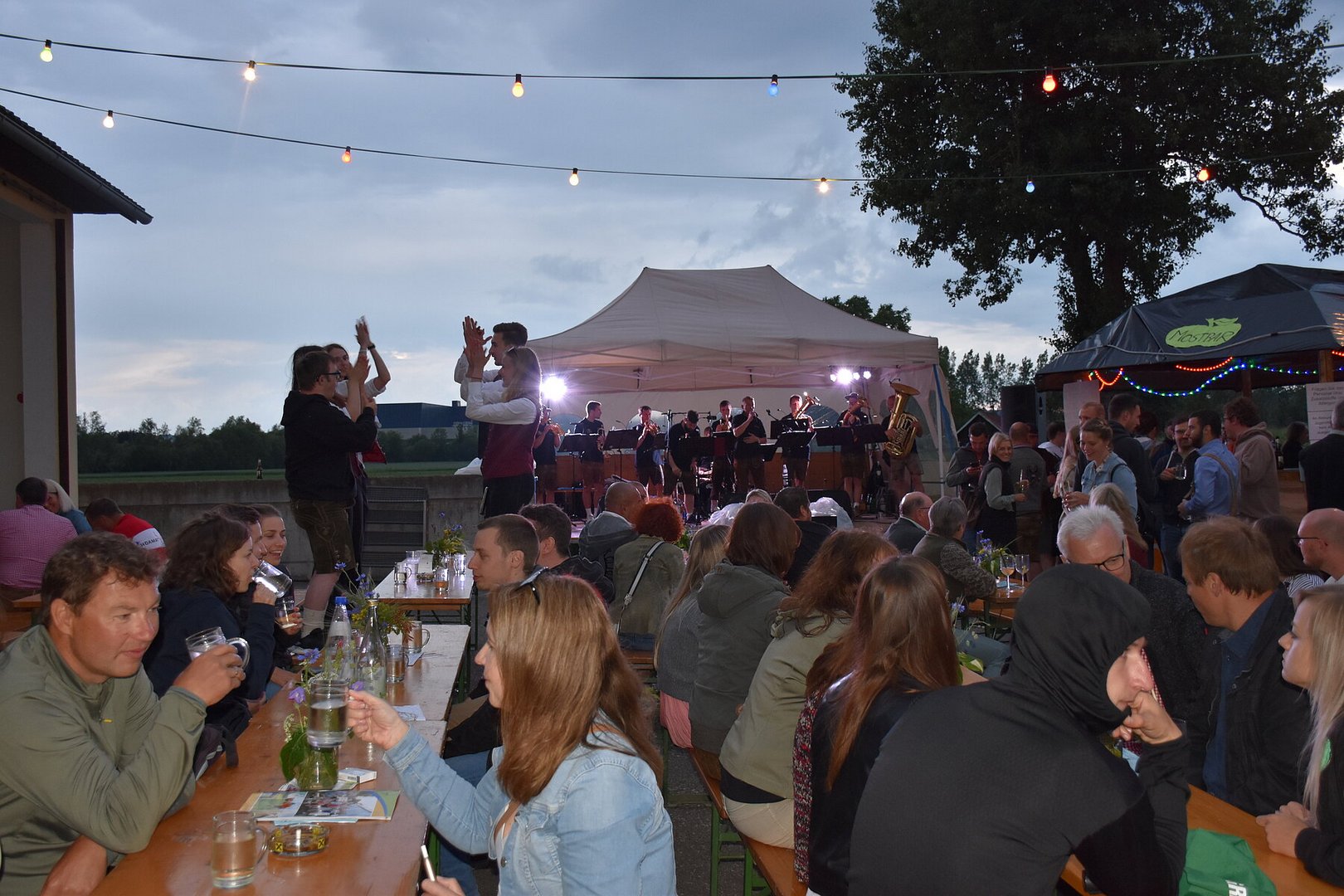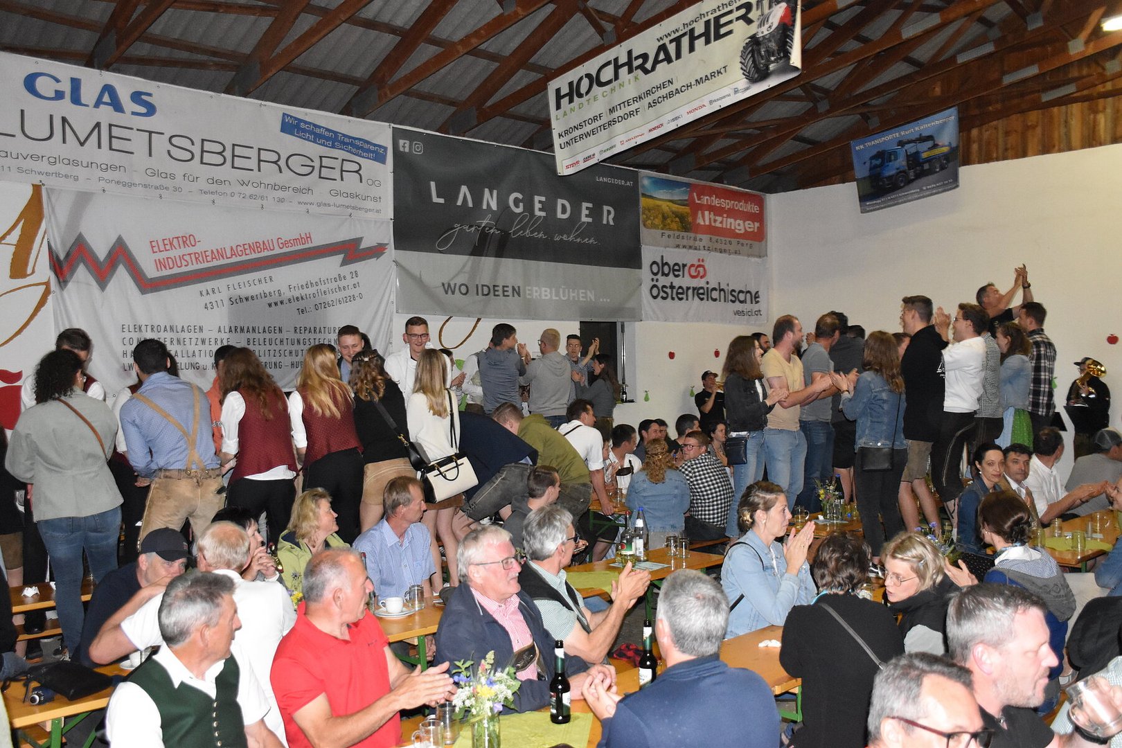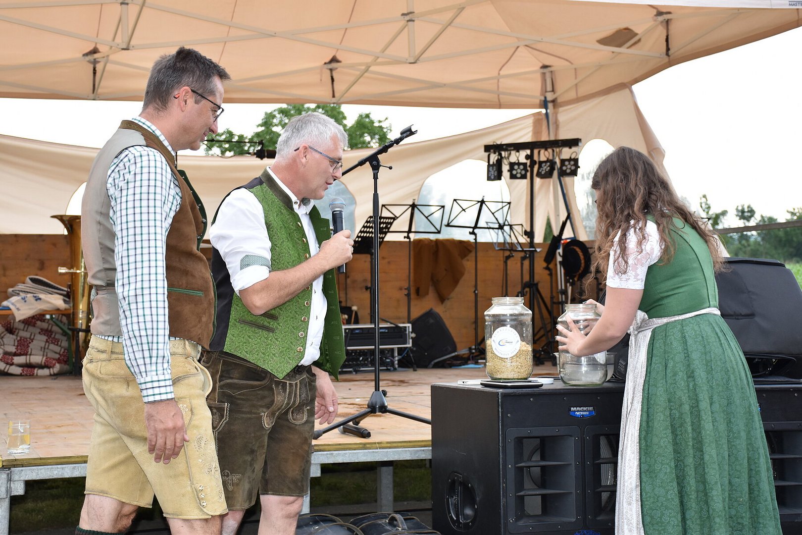Am Abend setzte sich die Feier in der Halle mit den d'Aushüfen fort, und trotz des Regens herrschte eine ausgezeichnete Stimmung. In der Schnapsbar der Landjugend konnte man bei moderner Partymusik seinen Durst stillen. Die Landjugend bedankt sich herzlich bei allen Gästen, Helfern und Sponsoren, die die Mostkost unterstützt und zu einem gelungenen Event gemacht haben.
